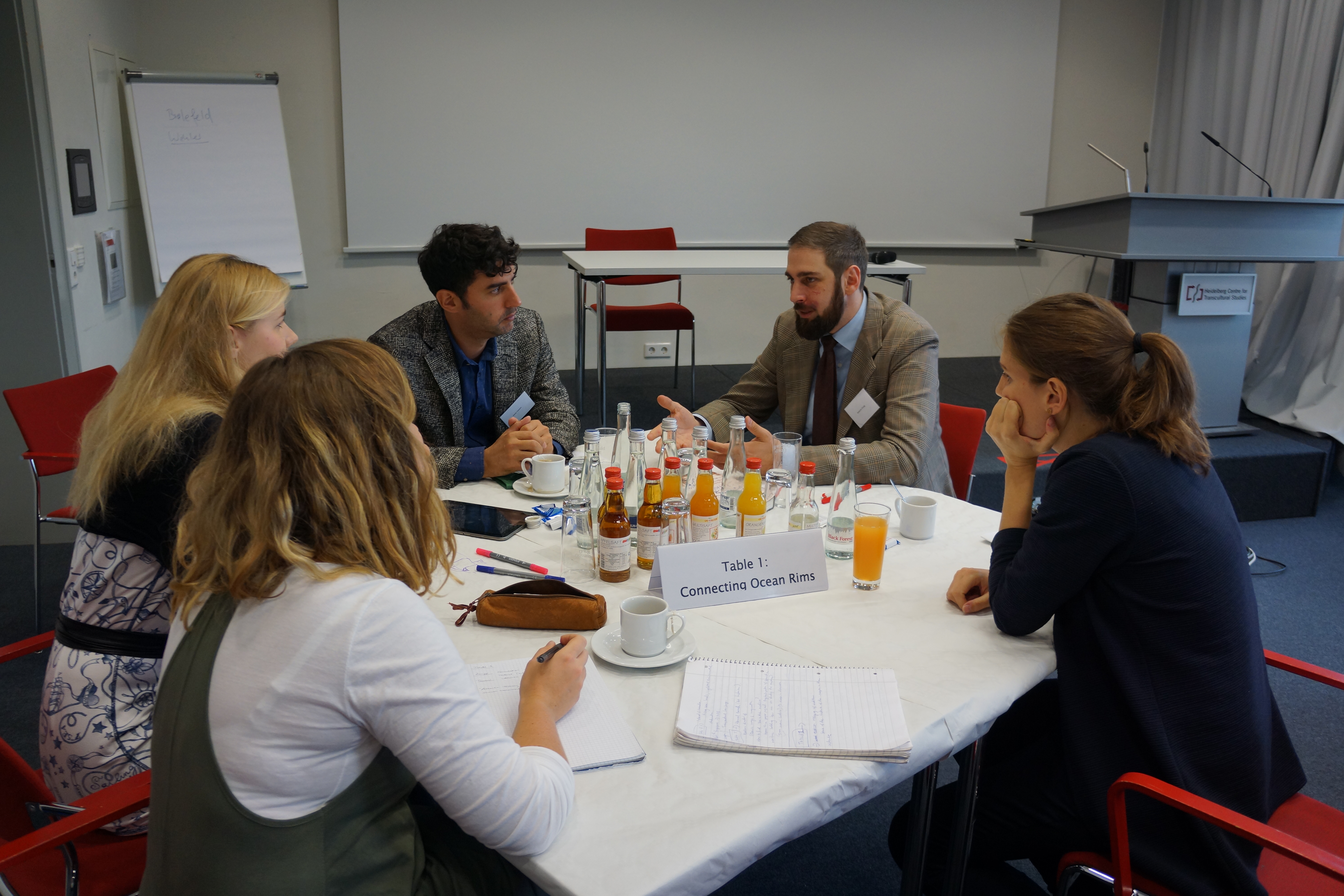 The fourth discussion table was led by Felix Mallin, a Political Geographer at the National University of Singapore and Carsten Wergin who currently leads the Interdisciplinary Research Group “The Transcultural Heritage of Northwest Australia: Dynamics and Resistances” at Ruprecht-Karls-University Heidelberg. They focused their discussion on islands and beaches. They argued that islands and beaches are geopolitical spaces. These are spaces for territorial contestation, or the contestations of natural resources. They further added that islands are spaces of connectivity and acts as a hub for economic activities.