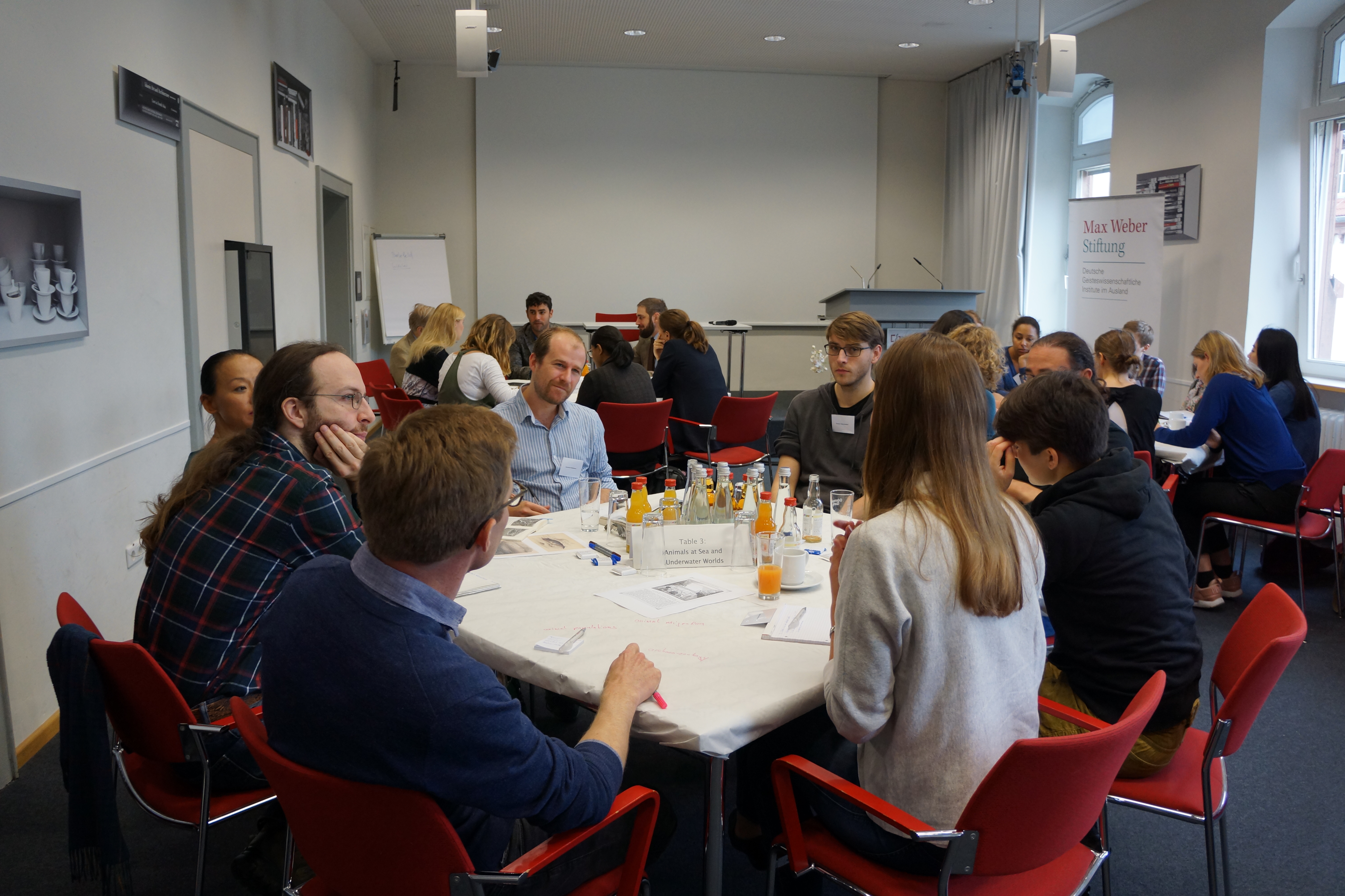In the remaining tables, various other topics were discussed. The discussion topic in the second table was led by Dr Susann Liebich, a postdoctoral fellow at the Cluster Asia and Europe at Heidelberg University and Daniela Egger, a researcher at the Chair for Modern History at Ludwig-Maximilians-University, Munich. Their discussion offered a historical perspective on maritime travelers and the way traveling shaped ideas and identities of both sailors and travelers.