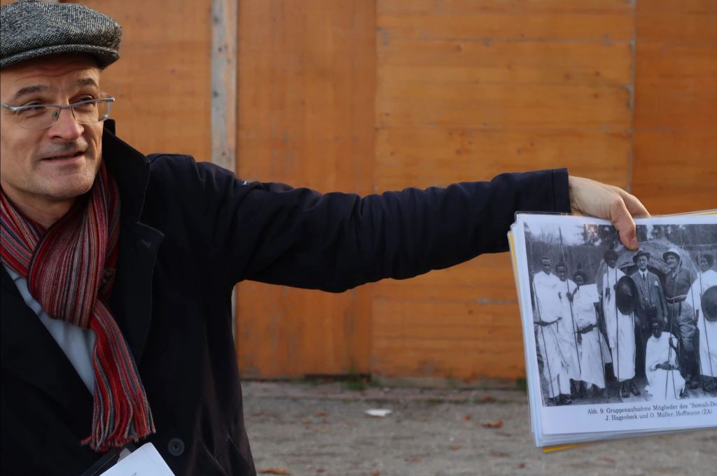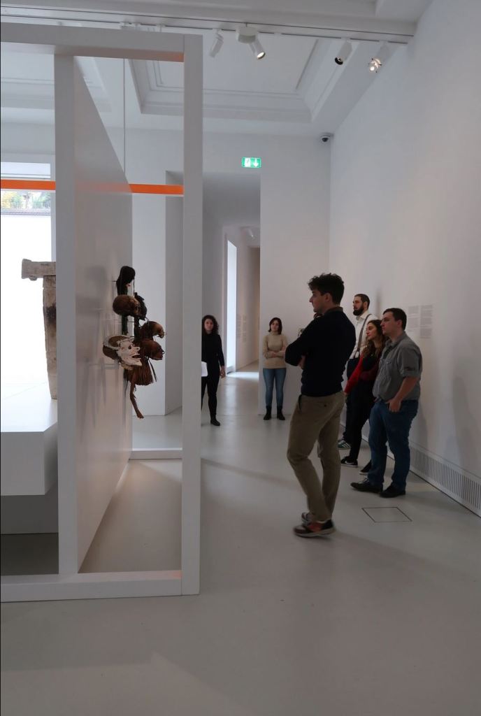 On 26 November, the research groups of The Exotic? (University of Bern) and Atlantic Italies (University of Zurich) travelld to Basel and explored the colonial legacies of the city. In the morning, we visited the exhibition “Wissensdrang trifft Sammelwut” at the Museum der Kulturen. We were welcomed by the curator of the Oceanic collection, Beatrice Voirol, who guided us through the exhibition and discussed with us about practices of collecting during the colonial era and about current debates on restitution. In the afternoon we walked around the city, learning about historical entanglements between Basel and Africa. Camilla Ley and Veit Arlt (Centre for African Studies Basel) recalled stories of Basel merchant-bankers investing in slave ship ventures, local entrepreneurs producing printed cotton textiles for African markets, human zoos as well as anti-apartheid activism during the 1980s.